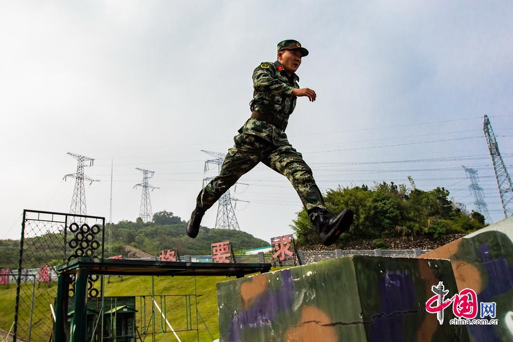如今中队有了条件优越的障碍训练场,让战士们的训练既安全又高效,而在中队建队之初只有利用碎砖、木料、水泥板建起的简易障碍场。中国网记者 郑亮摄