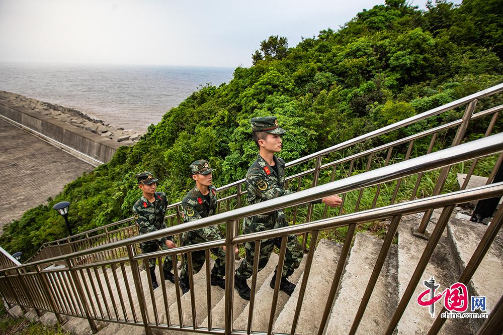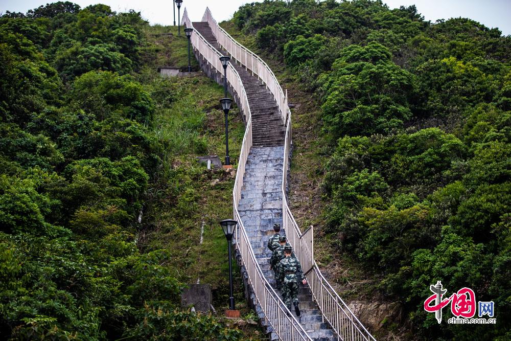 “海风轻拂这钢枪,日出映红了领花,178个台阶在我脚下,每回上哨我都用心数它……”这是一首专门为二号哨创作的歌曲《哨位》。中队官兵每次上哨都要爬上坡度近70度、共178个台阶的楼梯才能到达哨位,这里被官兵们戏称为“178高地”,能去二号哨执勤的都是在中队中综合素质最好的战士。中国网记者 郑亮摄