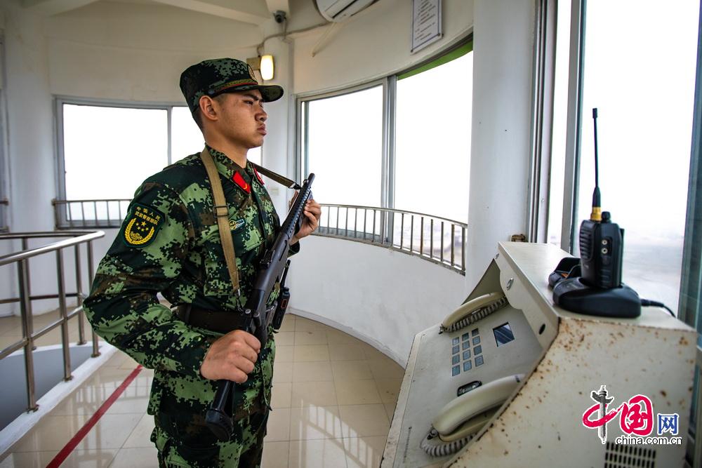 核电站的守卫工作最重要的部分就是警戒工作,从核电厂抬头望去,可以看到矗立在“二跳岛”上离营区最远的哨位——二号哨。哨位上冬天寒风刺骨,夏天挥汗如雨。空气湿度大,盐分含量高,对官兵的身体是不小考验。中国网记者 郑亮摄