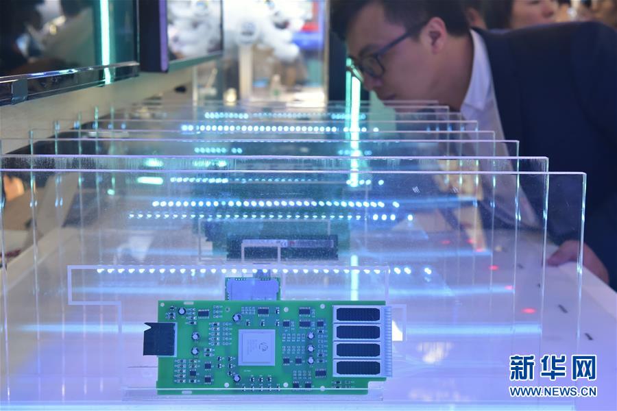 参展商在数博会上展示华为研发的闪存系统(5月26日摄)。 5月26日,2019中国国际大数据产业博览会在贵阳开幕,全球大数据业界的代表和嘉宾围绕“创新发展数说未来”的主题,共商大数据产业发展与合作大计。 新华社记者 欧东衢 摄