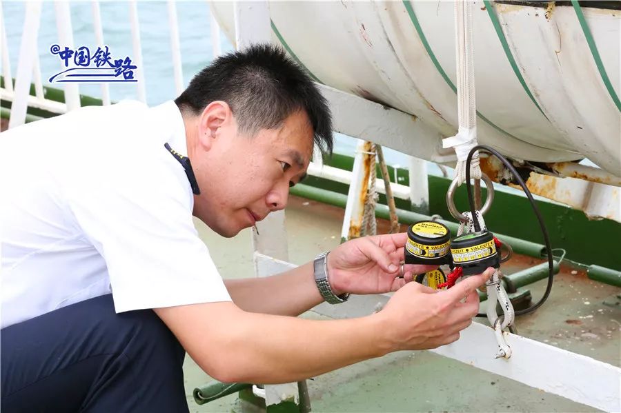 火车登船后,每节车厢有4个牵引、4个固定共8个控制点,以确保车身被“钉死”在轨道上。每次出发之前,路巍都要到火车舱里仔细检查这些“大家伙”,再次确认车厢固定状态是否良好。
