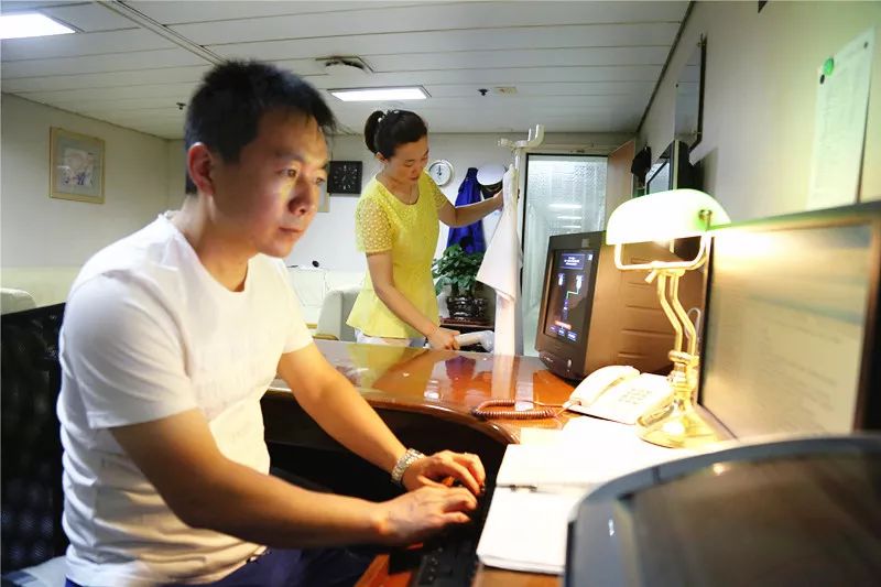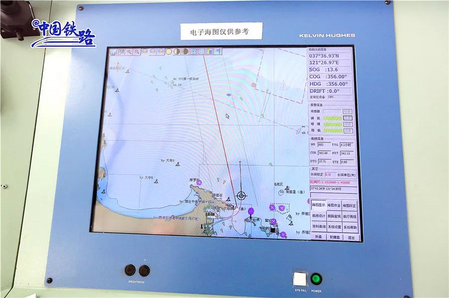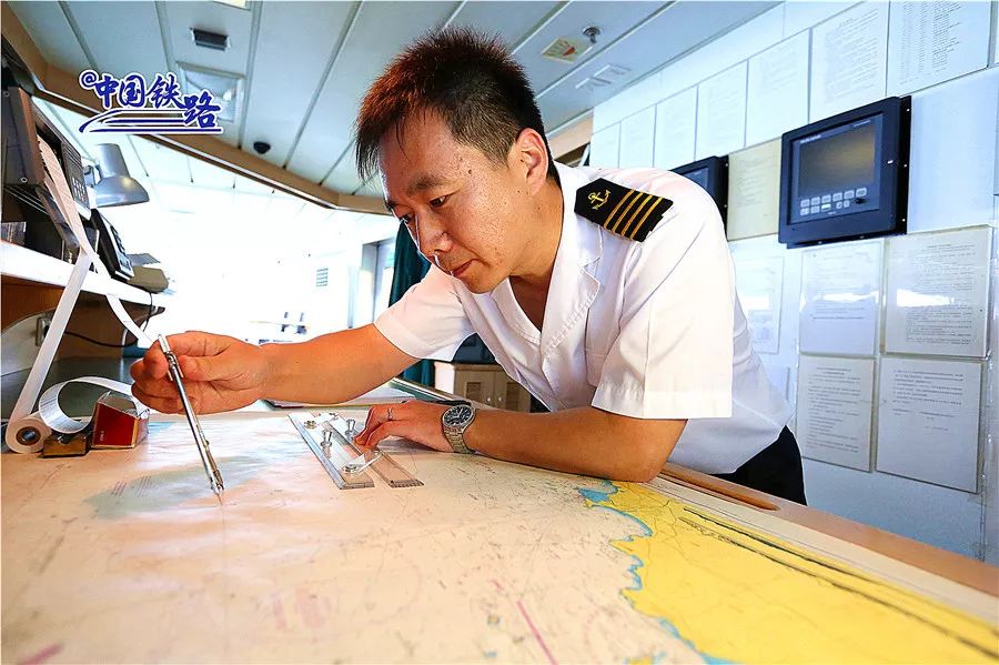 航行中,路巍要随时查看海图,接收气象信息,掌握渡船航向、航速、吃水、预计抵港时间等信息。