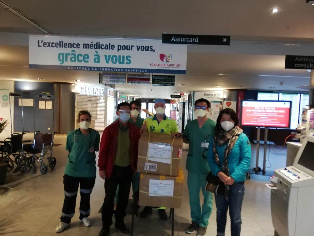 3月23日,在比华人将护目镜捐赠给比利时布鲁塞尔当地医院。(图片由受访者提供)