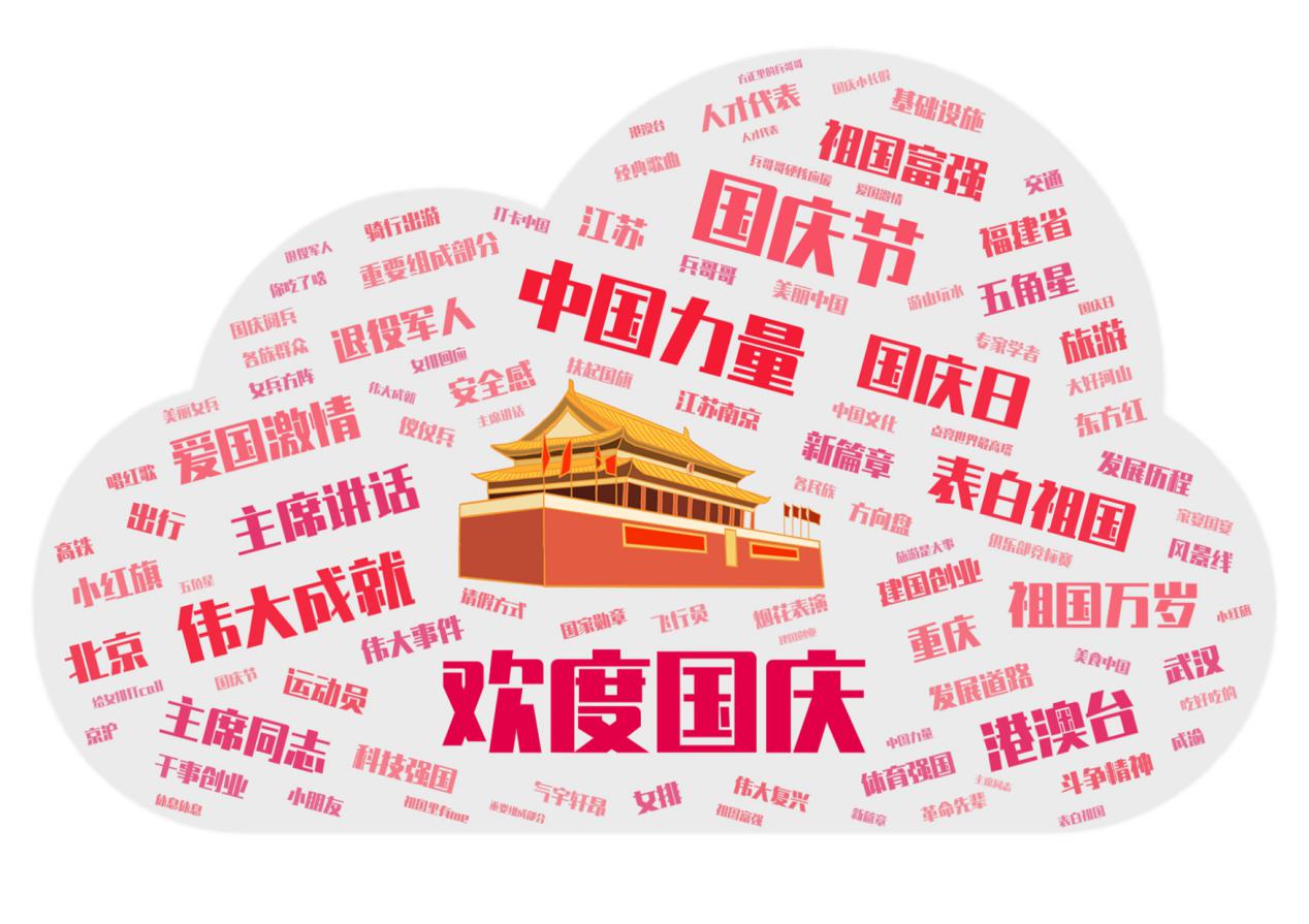今天的词云也不例外,仍是围绕着国庆、大阅兵、祖国等词组展开。