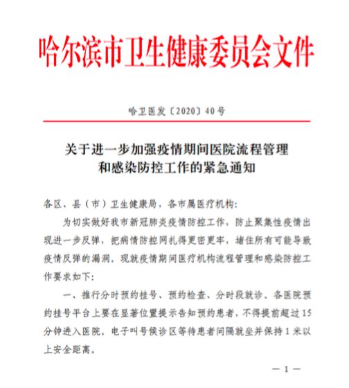 防止院内感染再发生 哈尔滨市卫健委要求医院加强首诊负责制 实行病区分区管理