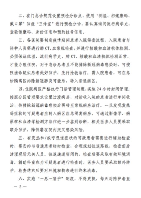 第二,哈尔滨市出台了《关于进一步加强疫情期间医院流程管理和感染防控工作的紧急通知》。这个紧急通知在过去“严八条”的基础上又增加了新措施,包括预约诊疗、发热门诊筛查(CT、血常规、核酸、抗体检测)。只有这些检测都没问题,患者才能入院。