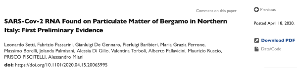 澎湃新闻报道,作为疫情最严重的国家之一,意大利国内的科研团队也在围绕新冠病毒(SARS-CoV-2)展开多方面研究。日前,来自意大利国内博洛尼亚大学、“阿尔多·莫罗”大学、的里雅斯特大学、米兰大学等团队的13名研究人员在医学预印本平台medRxiv上发表了一项研究“意大利北部贝加莫颗粒物(PM)中发现SARS-Cov-2 RNA:第一个初步证据”。