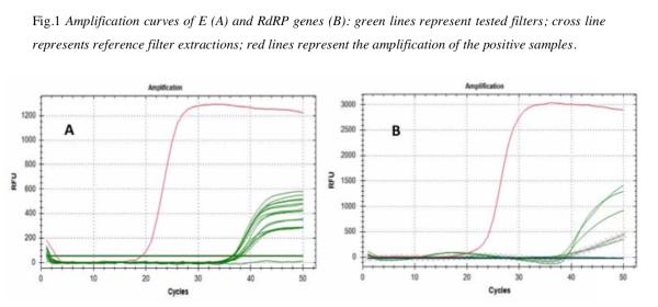 他们提到,虽然考虑到样本的性质,以及抽样尚未进行临床诊断,但进行了环境污染测试。另外,由于意大利的封城措施,这些过滤器在进行分子遗传学分析前至少保存了四周。但他们可以推断,8个样品针对高特异性RtDR基因的检测呈阳性,可以让他们合理证明SARS-CoV-2病毒RNA的存在。