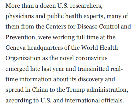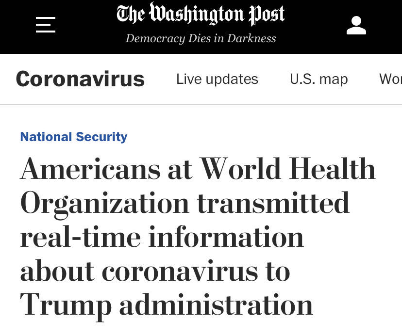 △《华盛顿邮报》:世卫组织中的美国人向特朗普政府传送了关于新冠病毒的实时信息。