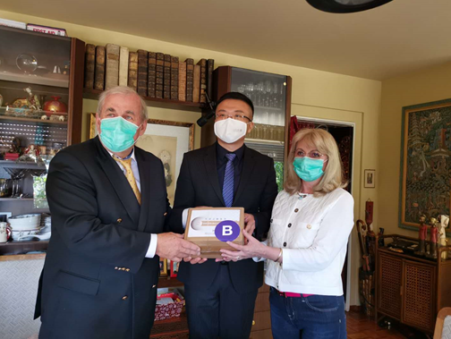 中国驻德国大使吴恳与南京市捐赠物资合影