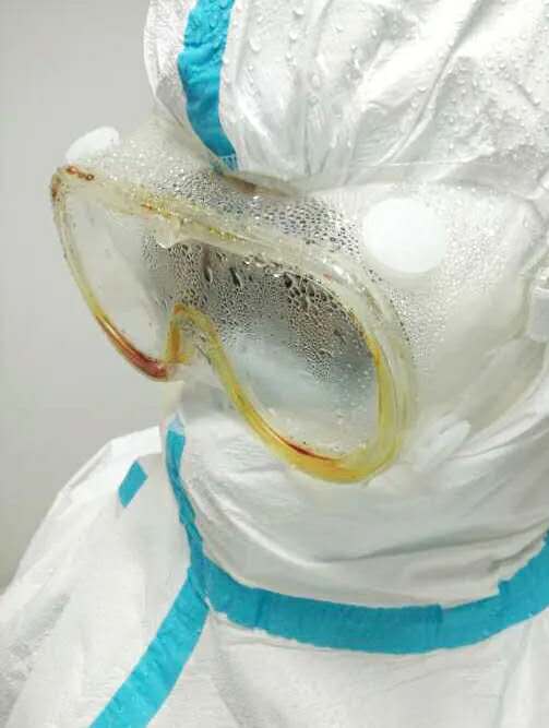 “哎,老师,你给我身上也喷点消毒液吧!”和黄琳搭班的金昌中心医院一名九五年的护士,看到背着消毒箱消杀楼道的老师,也会追着给她身上也喷点消毒液。“因为我们频繁进出病房,频繁接触患者,外层的防护服无疑是污染最严重的,她拉着我一起过去。”那位老师看着我们,一副孩童的模样,打趣的说:“好好好,来,给你们也消消毒。