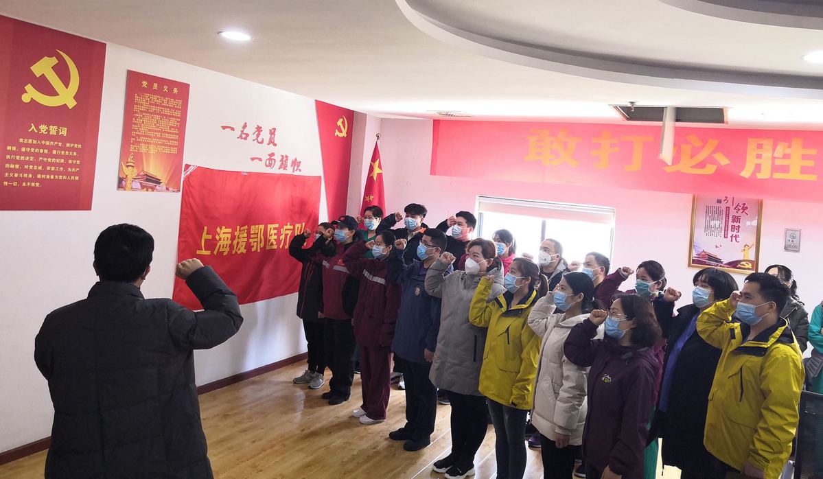 下午1点,有一场特别重要的党员大会,今天上海医疗队会有17名入党积极分子火线入党,这里面就有我们仁济医院外科ICU的吴文三护士,也是我们上海第一批援鄂医疗队临时党支部第六小组的一名入党积极分子(和我一个小组)。他从05年入职以来,工作一直兢兢业业,勤勤恳恳,是ICU公认的好人。在仁济工作的这么多年里,他熟练地掌握了ECMO等很多专业知识和技能;在思想上一直向党组织靠拢,在上海时他写过入党申请书,到达武汉后他又第一时间递上了入党申请书;在工作中他服从医疗队领导安排,发挥自身的专科优势,全心全意为病人服务,参与队里首例ECMO的护理,参与CRRT的护理,主动承担一些高风险的操作,还注重患者生理和心理的护理。平时,休息时候,他也是我们志愿者小分队的一位壮劳力,上次我搬家,就是他主动提出帮我的忙。今天他火线入党了,我和他一样高兴,为他骄傲,为他自豪。