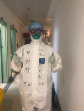 陈剑超一到黄石,立即投入紧锣密鼓的“感控”练习,抽不出多少时间联系陈悦。那两天,陈悦很担心。陈剑超参加黄石市中心医院的穿脱防护服操作流程演示后,赶紧跟陈悦报告“自己做得很好,才被选上的”,陈悦放心了很多。