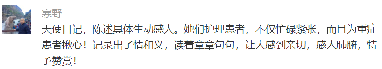 《天使日记》播出后,得到广大网友的强烈反响,大家纷纷被这些日记的内容所感动,为一线的“天使”们加油点赞。
