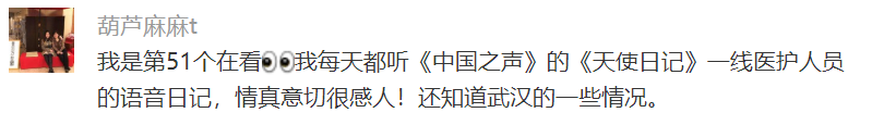 新冠肺炎疫情发生以来,全国各地的“白衣天使”们纷纷冲向抗“疫”一线。这期间,中国之声专门推出了《天使日记》系列节目,记录“白衣天使”们的工作日常,捕捉“战疫”最前线的点滴感动。
