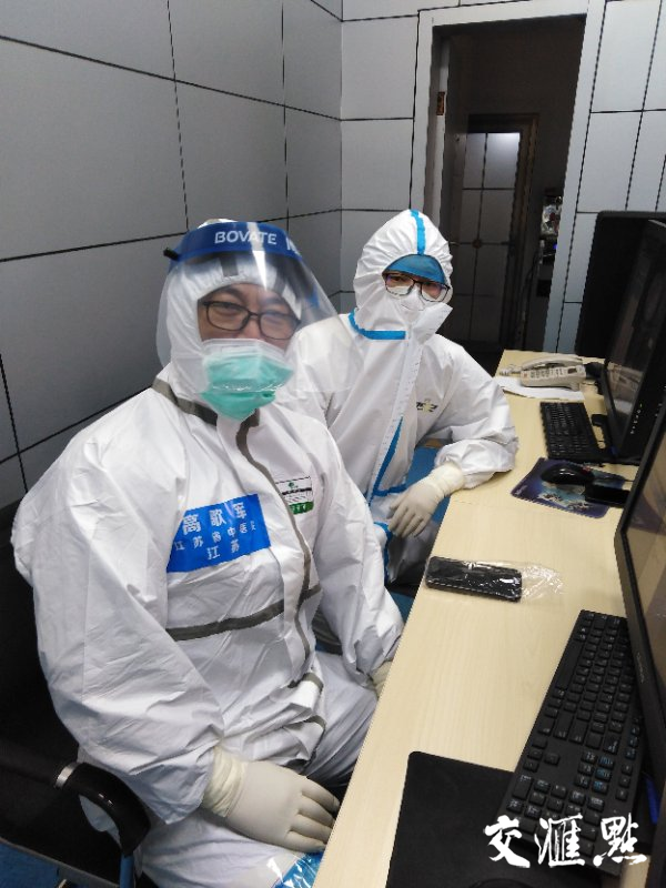 他们就是来自江苏省中医院放射科的副主任、54岁的高歌军主任医师、教授、博导和南京市中西医结合医院放射科的主任、48岁的唐晨虎副主任医师,他们是整个入住江夏方舱医院的国家中医医疗队中仅有的两位影像科专家,他们随国家中医医疗队2月10到达武汉。至今,他们已在抗疫一线战斗整整一个月了。